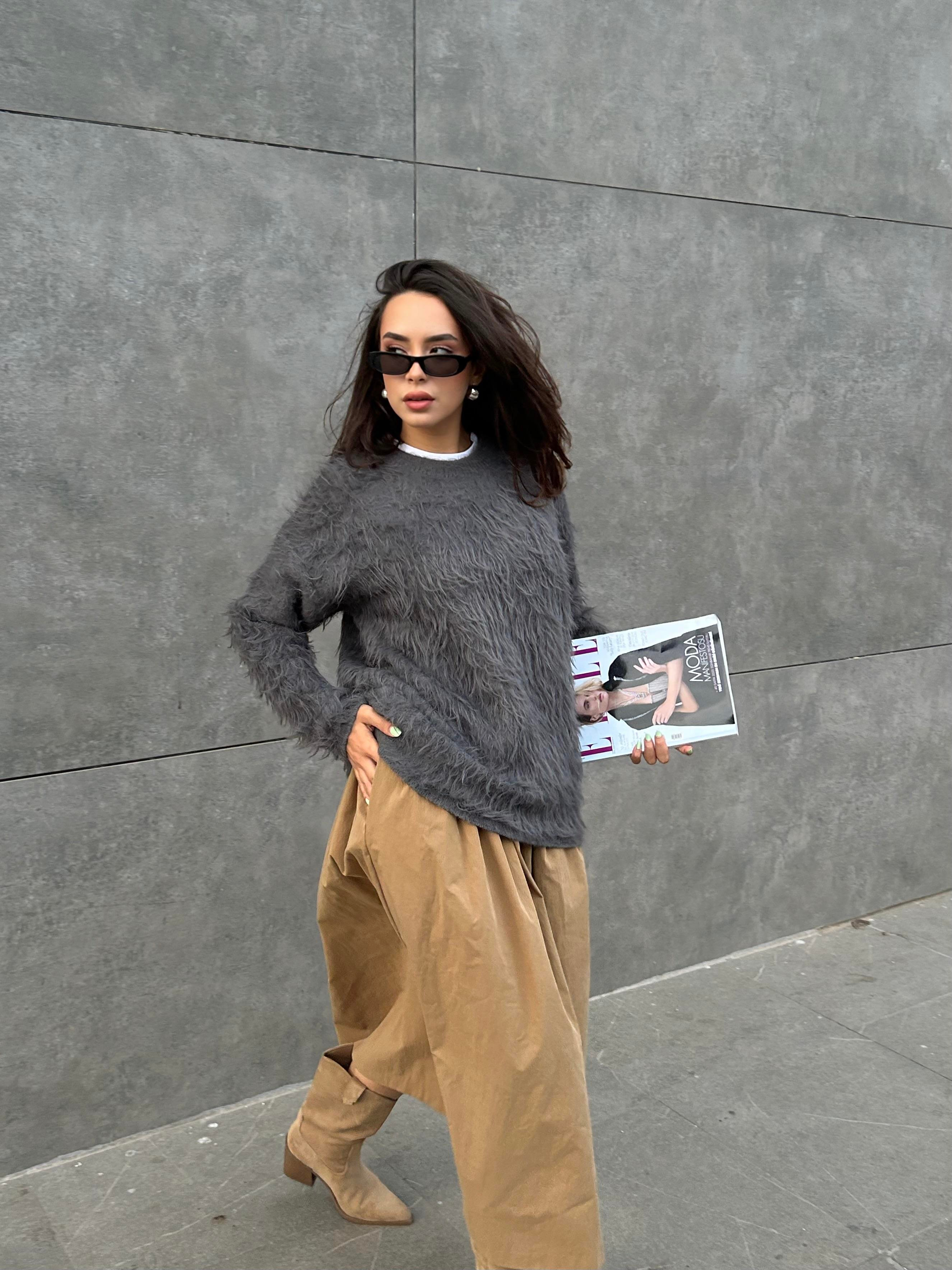 Kadın Antrasit Bisiklet Yaka Peluş Kazak 90 (90)