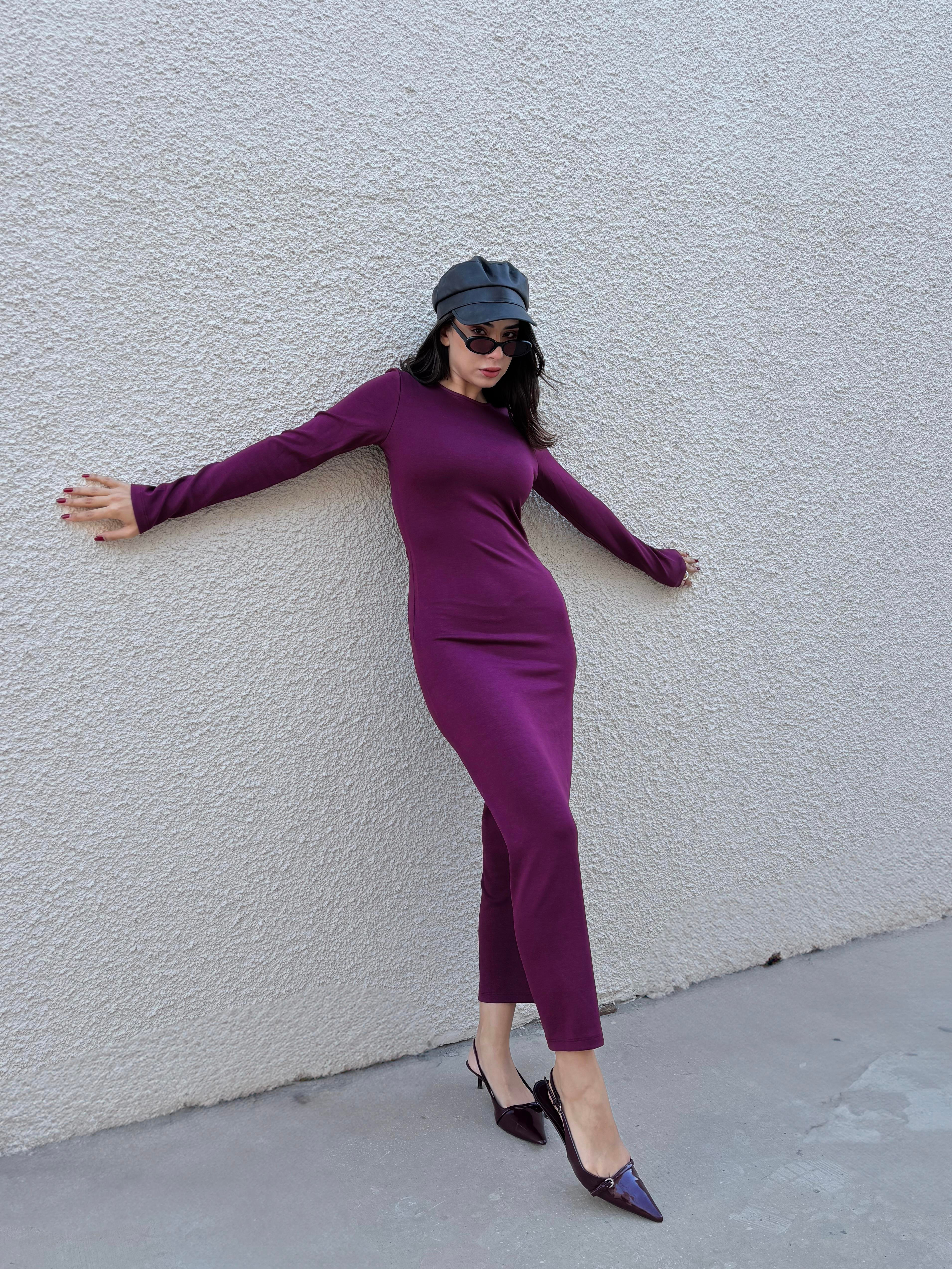 Kadın Bordo Modal Kumaş Dar kesim Uzun Elbise 30073 (30073)