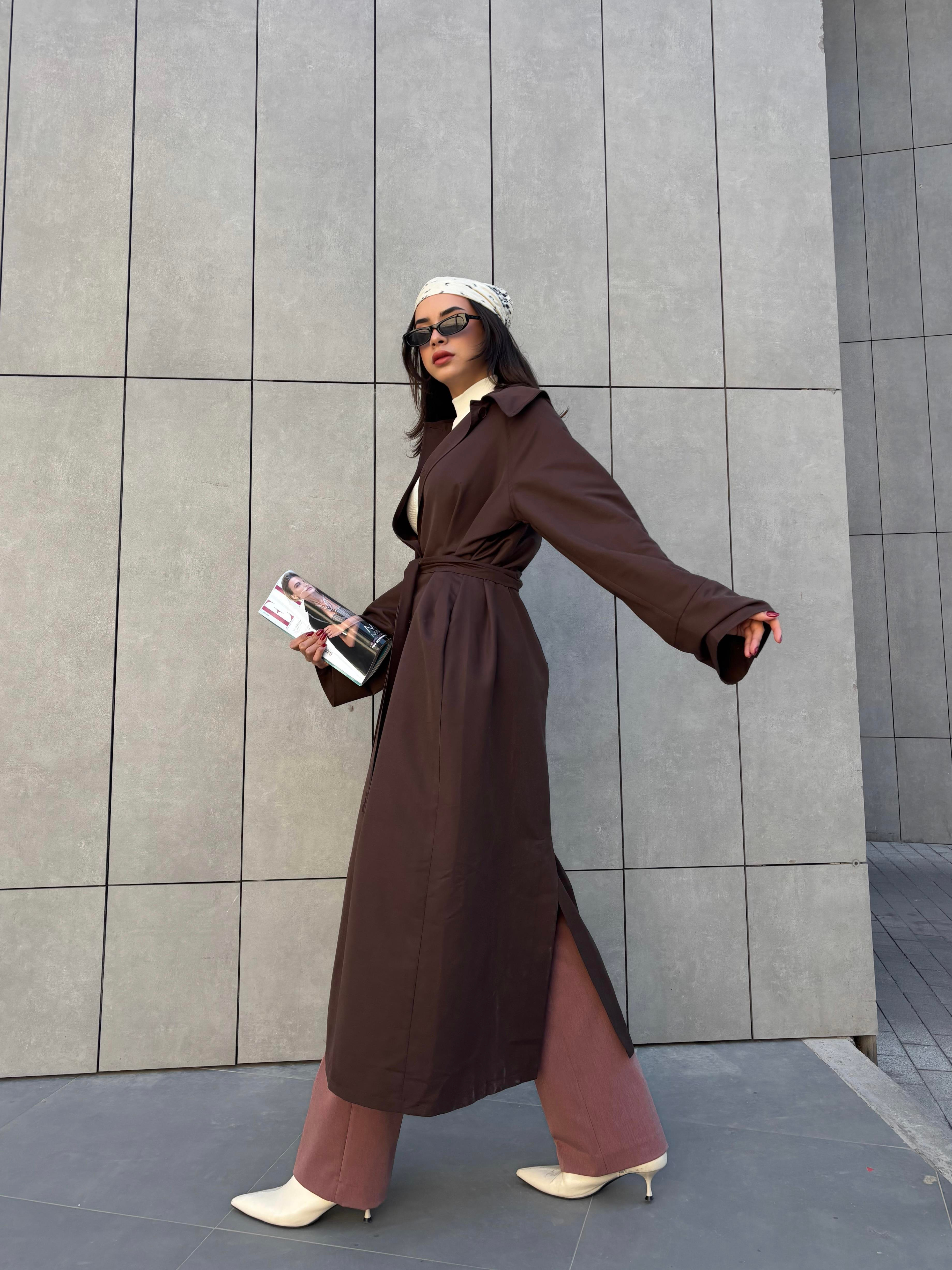 Kadın Kahve Fistanlı Uzun Trençkot 30030