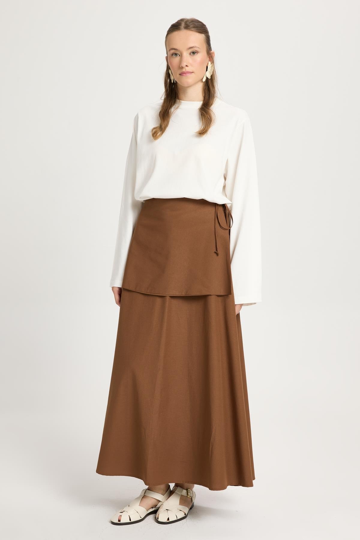Kadın Kahve Takma Kemerli Poplin Uzun Etek 30021