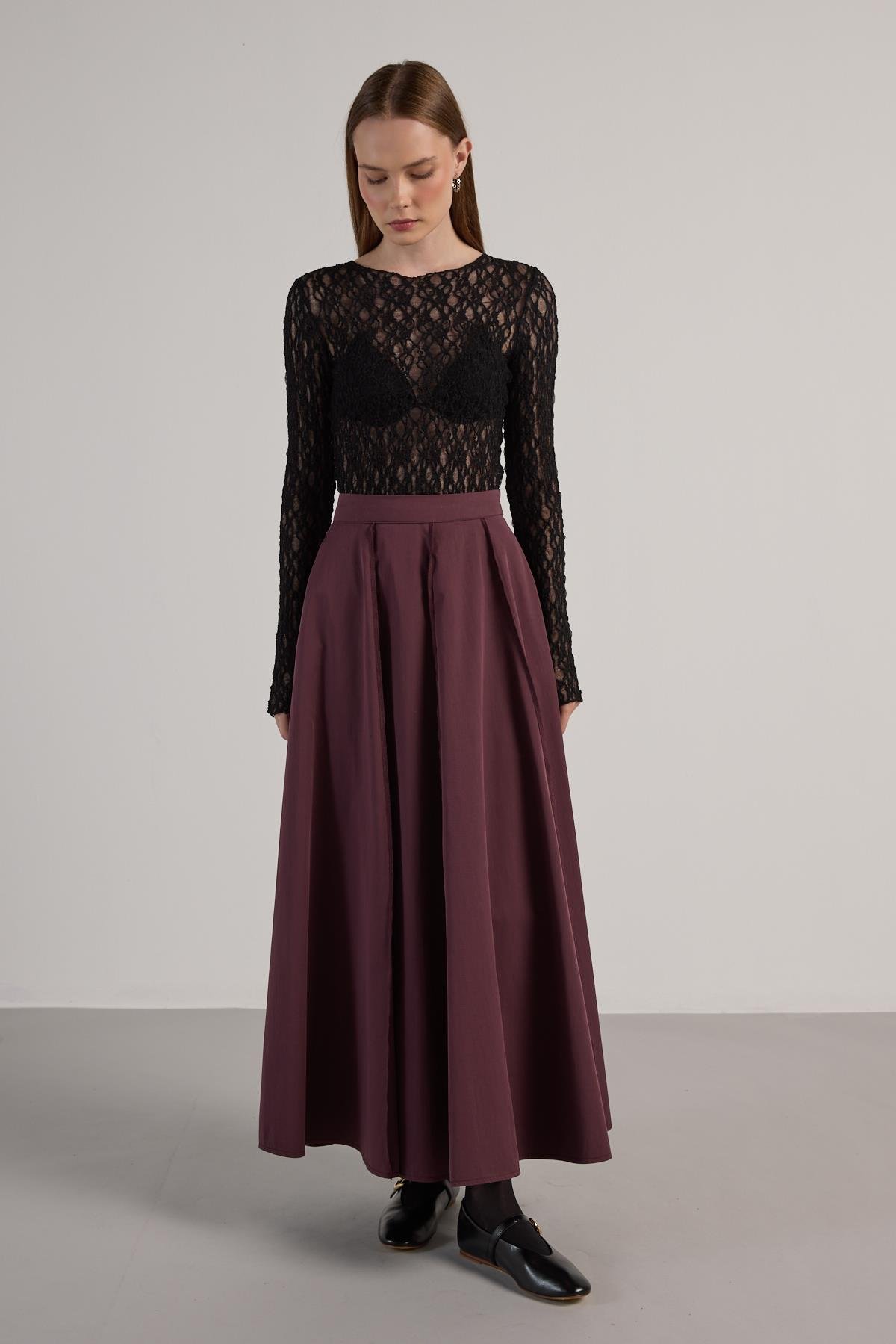 Kadın Mürdüm Parçalı Dikiş Detaylı Premium Uzun Etek 30054 (30054)