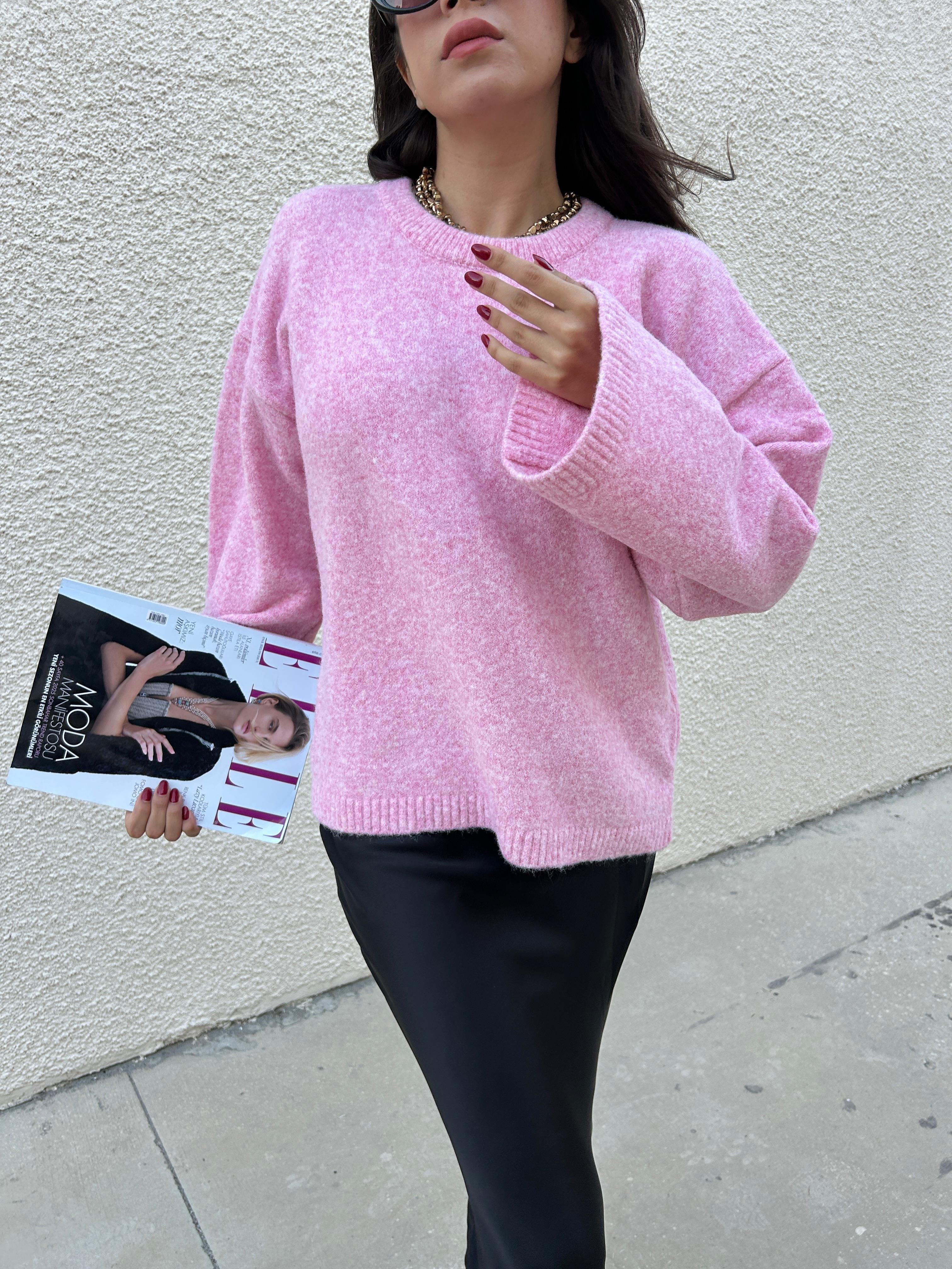 Kadın Pembe Oversize Yumoş Dokulu Kazak 7014