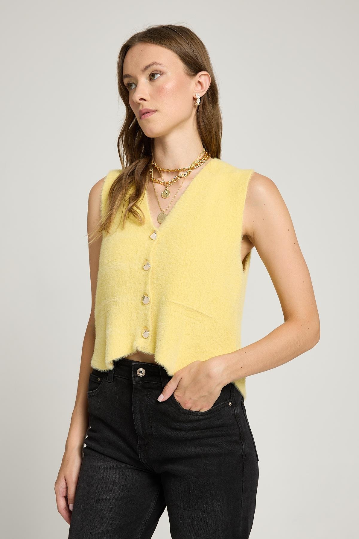 Kadın Sarı Triko Yelek Gold Düğme Detaylı Yumuşak Dokulu 2541