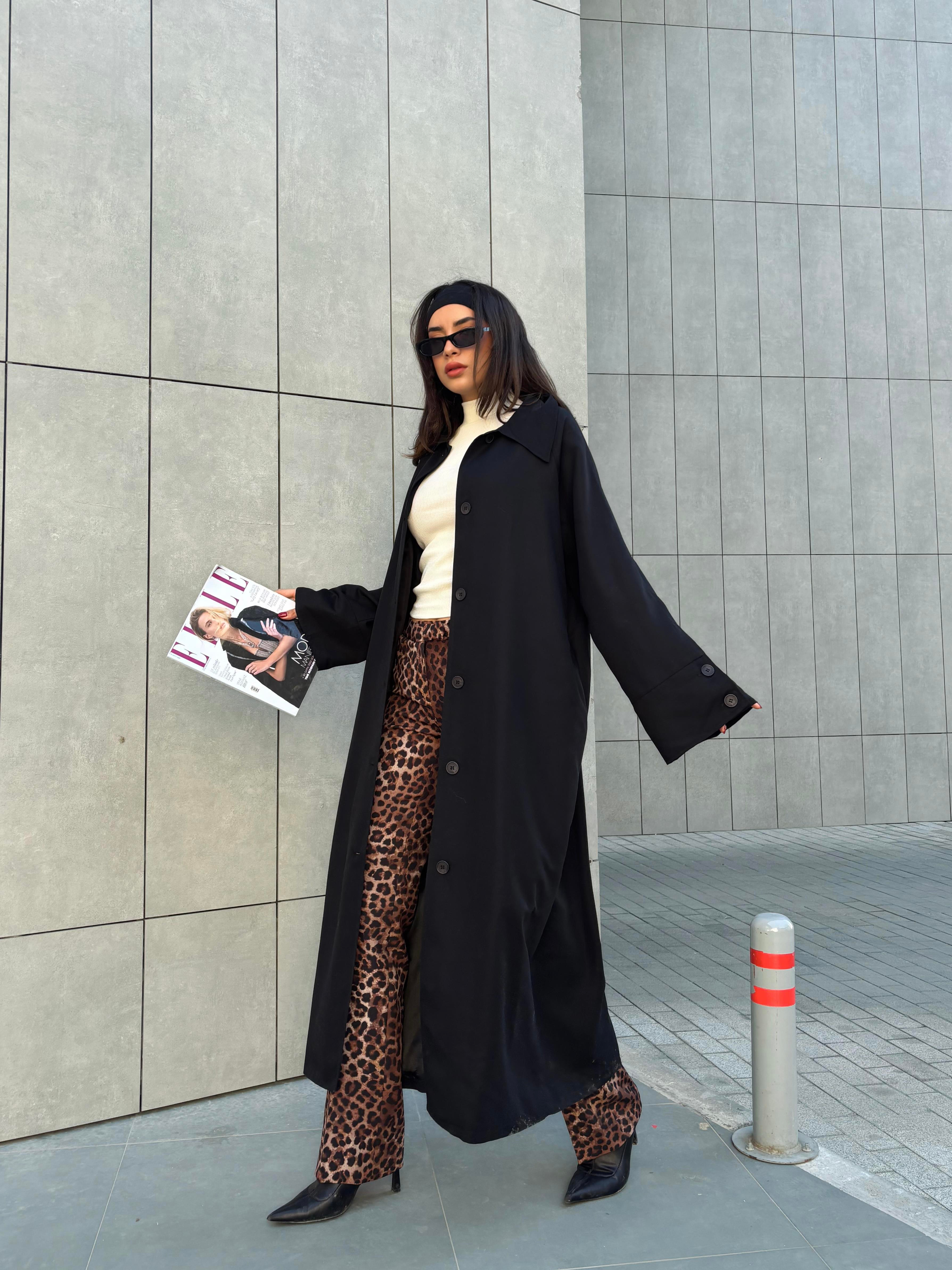 Uzun Astarlı Trençkot Siyah (30030)