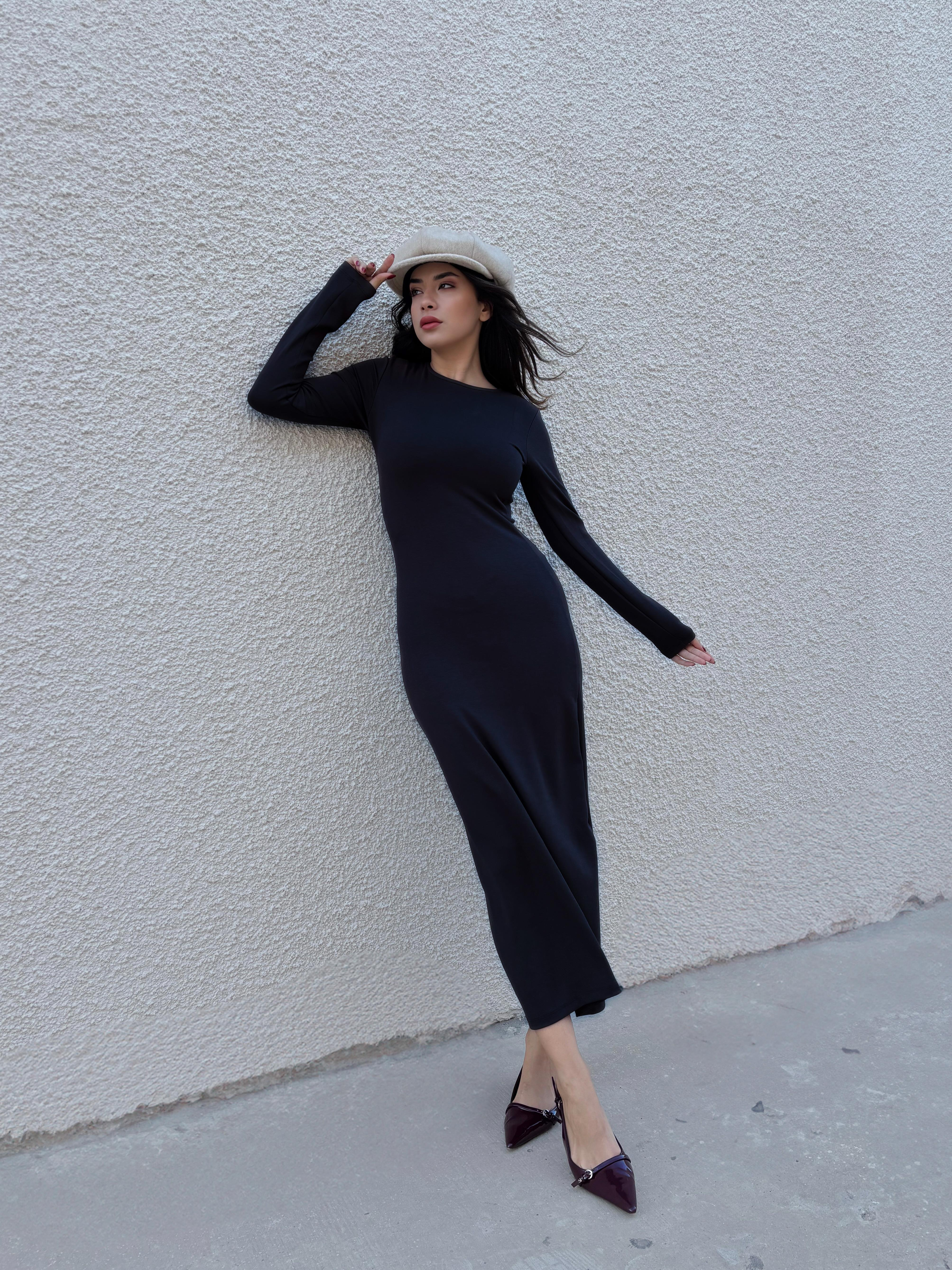 Kadın Siyah Modal Kumaş Dar kesim Uzun Elbise 30073 (30073)