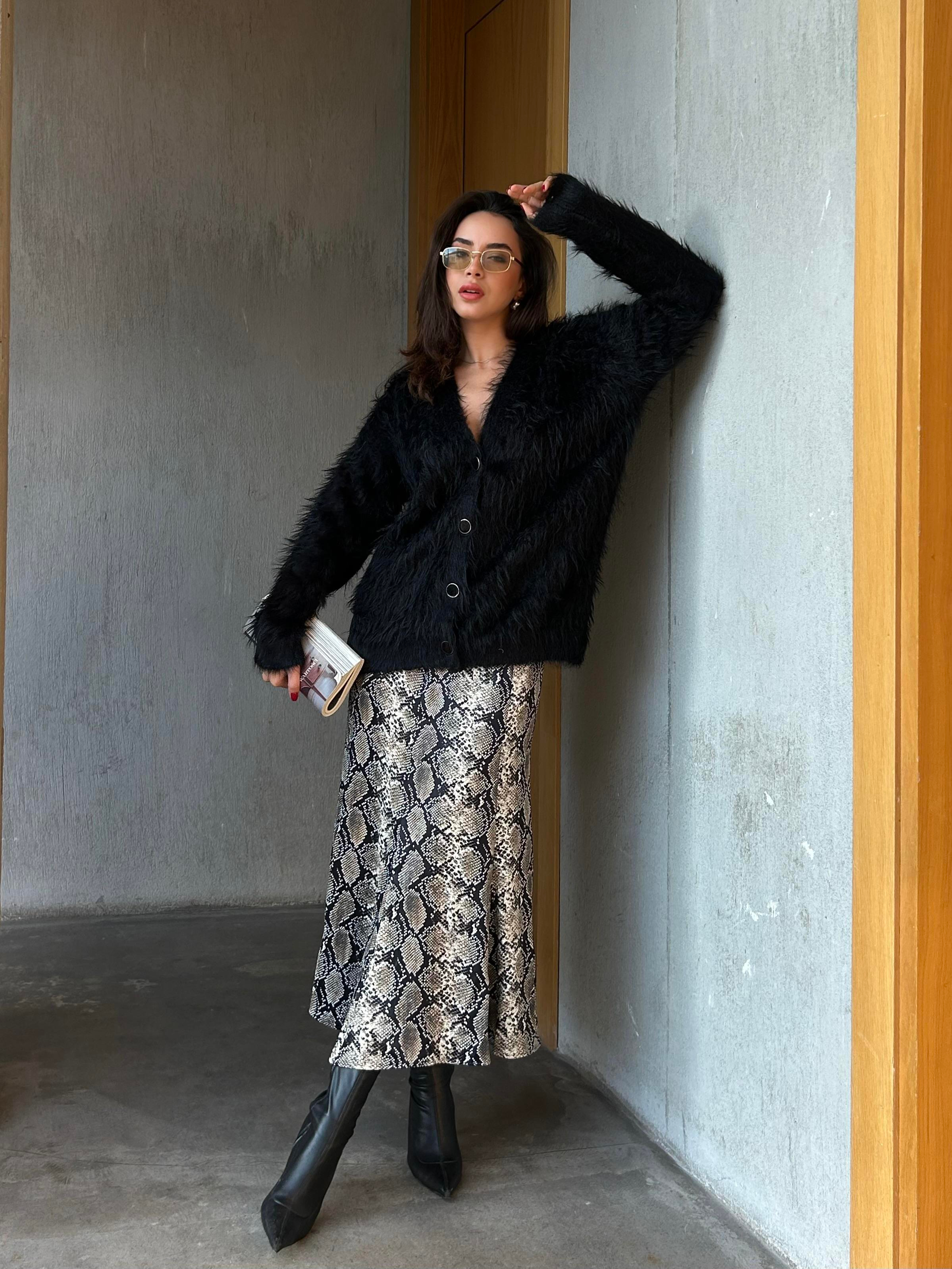 Kadın Siyah Peluş Oversize Triko Hırka 91
