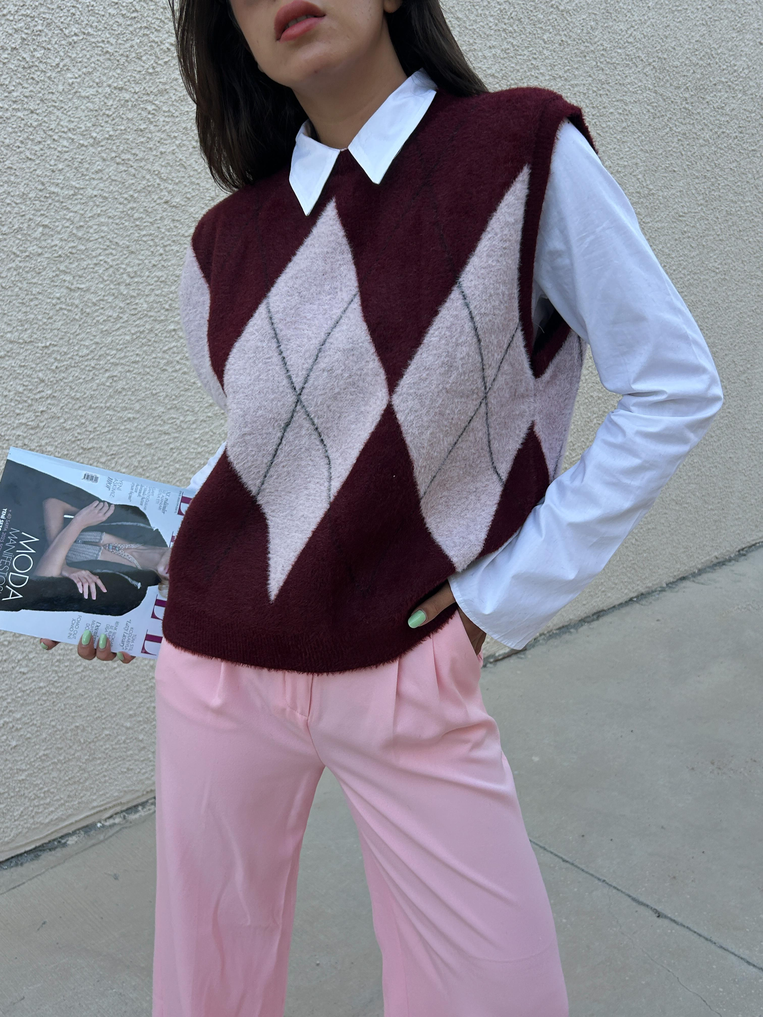 Kadın Triko Bordo Baklava Desen Yumuşak Dokulu Süveter 5244